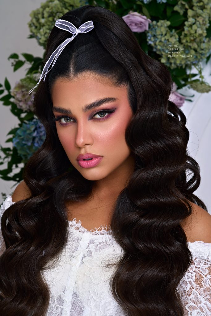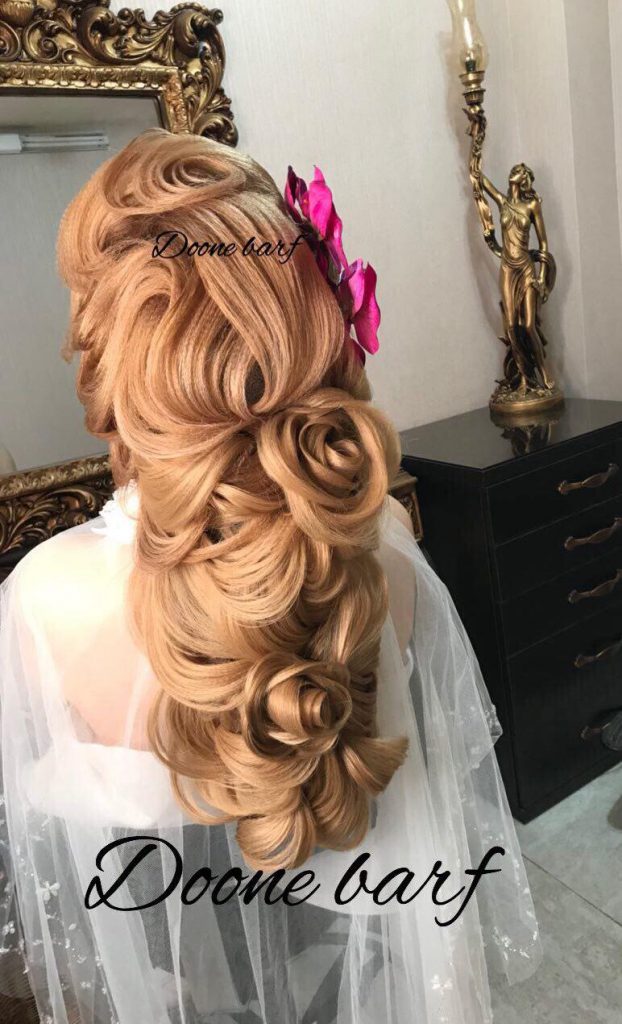 • مدل نیمهباز: در مدل نیمه باز که برای عکاسی و مراسم مناسب میباشد به این صورت است که یک قسمت مو را بسته و قسمت دیگر آن را باز نگه میدارند.