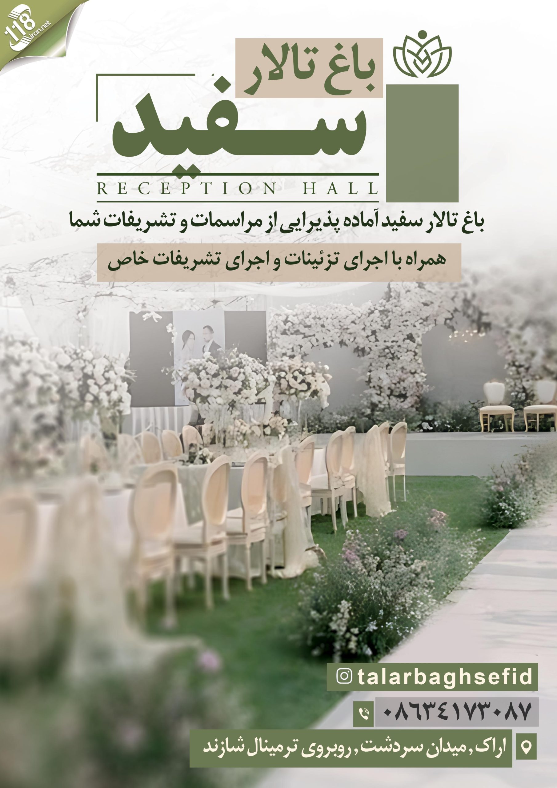باغ تالار سفید آماده پذیرایی از مراسمات و تشریفات شما مهمانان عزیز می باشد