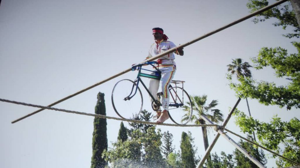 کم ترین خطای نوازندگان می توانست پیامدهای ناگواری به بار آورد؛ برای این که هنرپیشگان که در فواصل کوتاه نیزه های بلندي را می چرخاندند و معلّق می زدند، دچار سرگیجه و سردرگمی می شدند. بندبازی، بازي و نمایش ورزشی بر روی ریسمان بصورت حرکات سخت و شگفت آور .