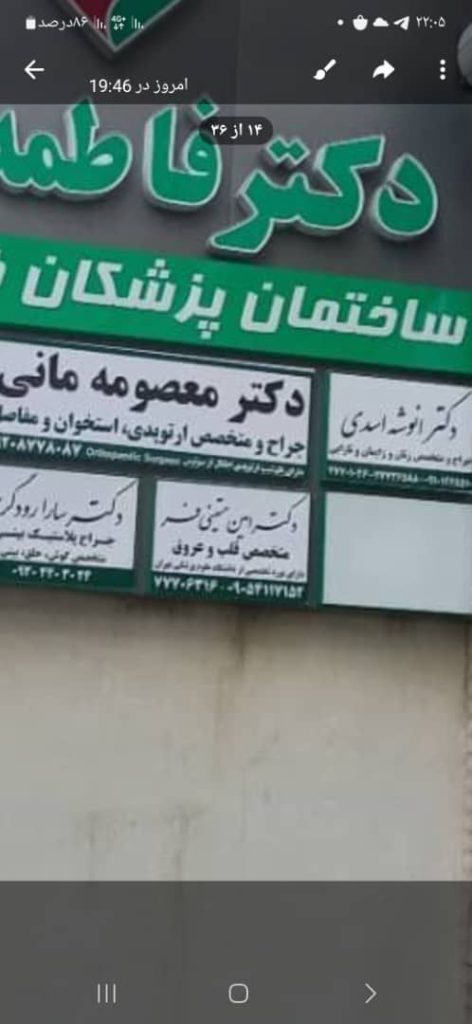 ۲) کلینیک نبضی نو : تهران , پیروزی , خیابان پنجم , نیوری هوایی , خیابان ۴/۲۸ , کوچه جباری , پلاک ۲ , واحد ۳