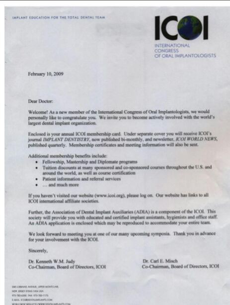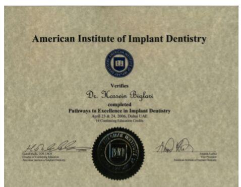 دارای فلوشیپ ایمپلنت و زیبایی از ICOI آمریکا