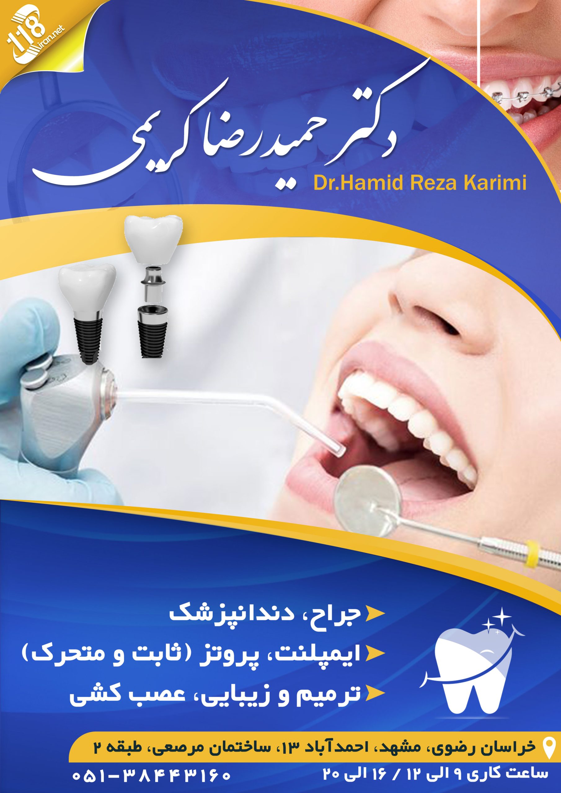 ایمپلنت , پروتز (ثابت و متحرک) , ترمیم و زیبایی , عصب کشی