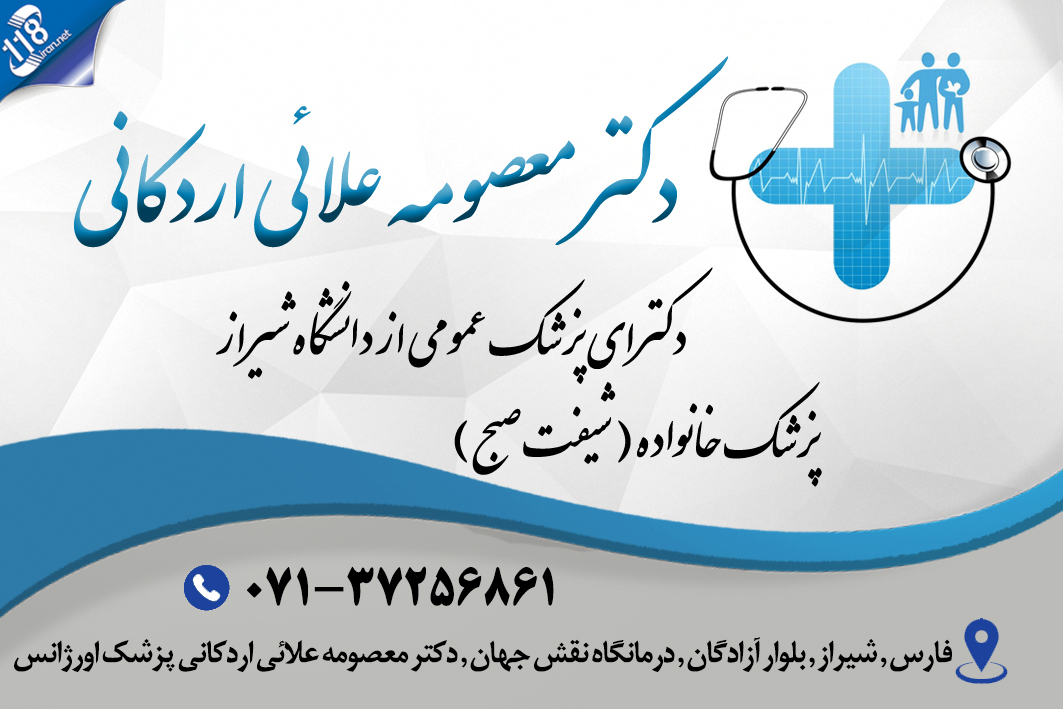 فارس , شیراز , بلوار آزادگان , درمانگاه نقش جهان , دکتر معصومه علائی اردکانی پزشک اورژانس