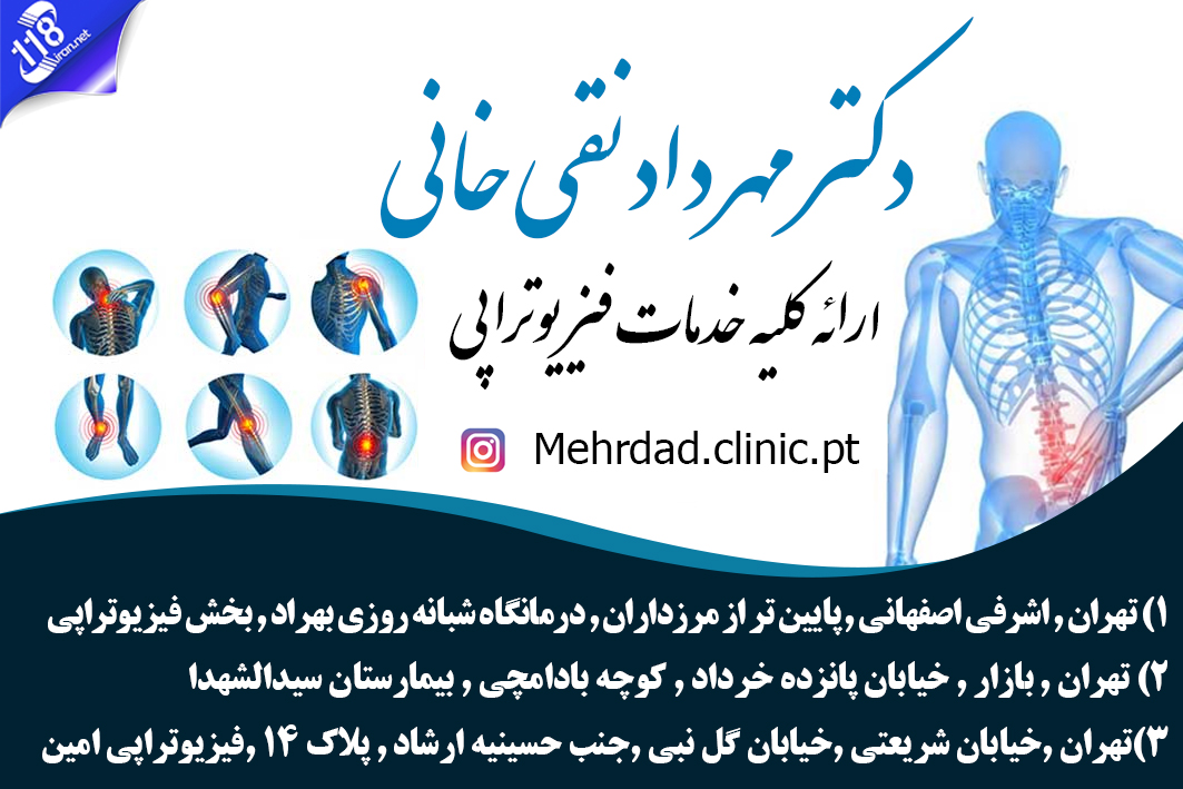 ۱) تهران , اشرفی اصفهانی , پایین تر از مرزداران , درمانگاه شبانه روزی بهراد , بخش فیزیوتراپی