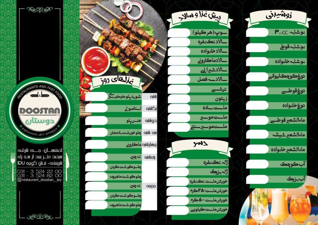 رستوران دوستان با فضایی مناسب و کیفیت مطلوب غذا و خدمات , آماده ارائه انواع غذاهای ایرانی به شما همشهریان محترم میباشد