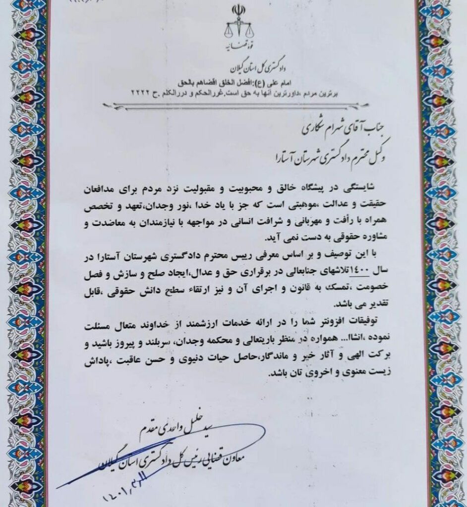 اولین کسی باشید که دیدگاهی می نویسد “شهرام شکاری وکیل پایه یک دادگستری”