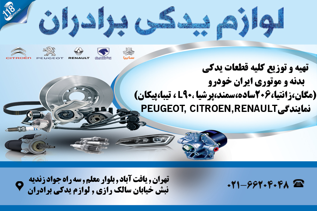 تهران , یافت آباد , بلوار معلم , سه راه جواد زندیه , نبش خیابان سالک رازی , لوازم یدکی برادران