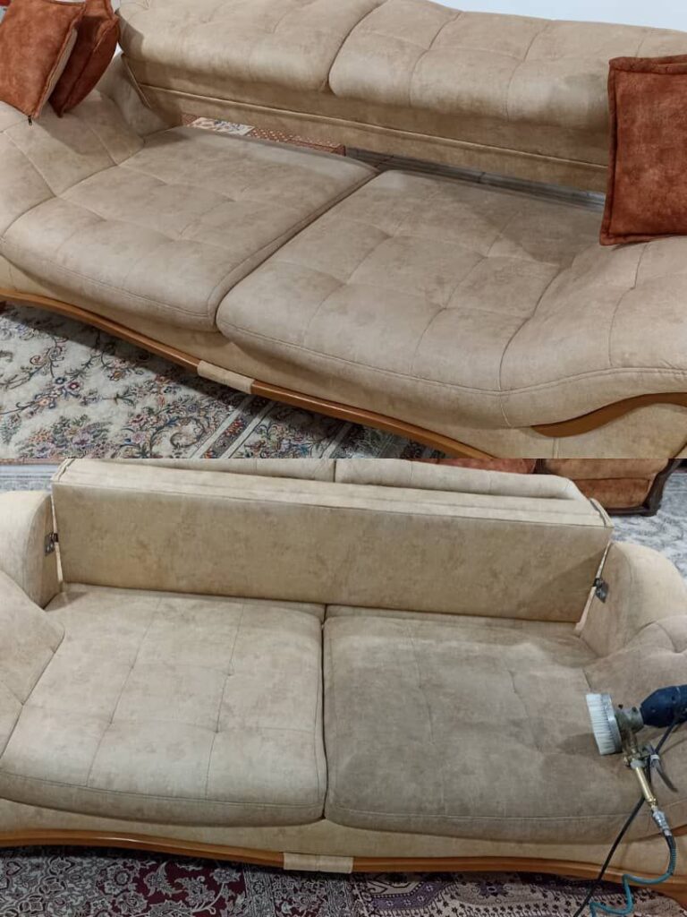 شستشوی کامل و لکه گیری و ضدعفونی انواع مبل و تشک خواب و … با مواد مخصوص و نانو با دستگاه مکانیزه