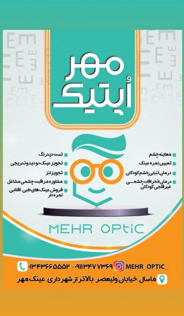 مرکز بینایی سنجی و عینک مهر اپتیک در ماسال