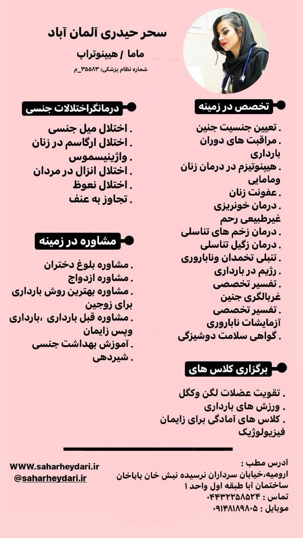 تشخیص و درمان بیماری های زنان در مطب ماما ” سحرحیدری آلمان آباد ”