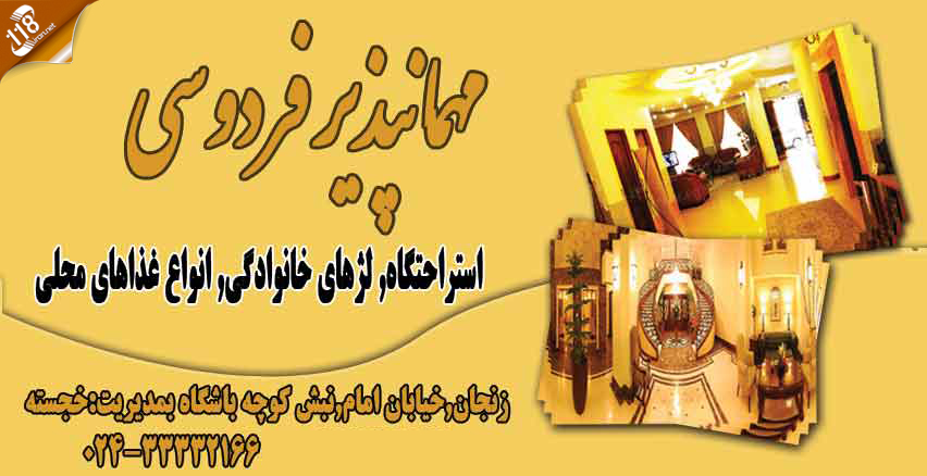 زنجان , خیابان امام , نبش کوچه باشگاه , مهمانپذیر فردوسی
