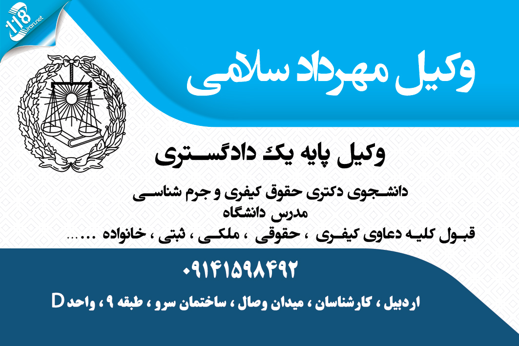 اولین کسی باشید که دیدگاهی می نویسد “وکیل مهرداد سلامی در اردبیل”