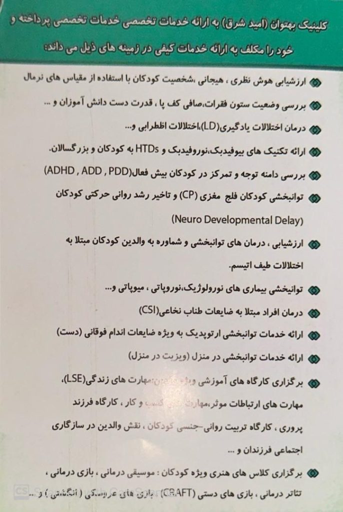 كلینیک بهتوان ) امید شرق( به ارائه خدمات تخصصي پرداخته و خود را مکلف به