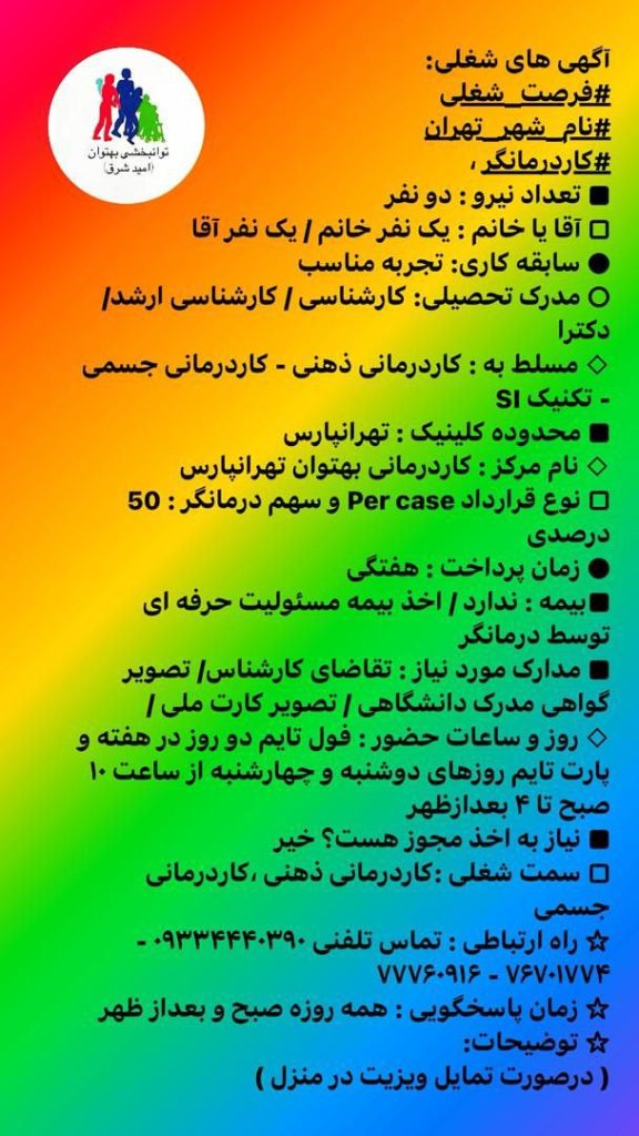 کار درمانی بهتوان تهرانپارس با مدیریت دکتر اسماعیلی