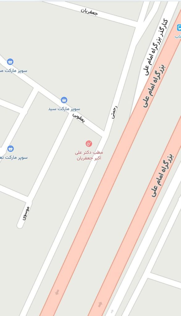 تهران , بزرگراه محلاتی , خیابان میرهاشمی , خیابان گل شناس به طرف غرب , خیابان حسین رحمتی , نبش کوچه محمد جعفر یعقوبی , ساختمان پزشکان شفا , پلاک ۲ , طبقه ۲
