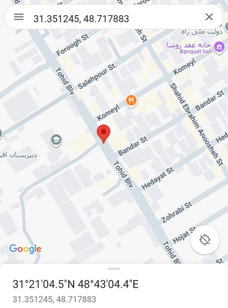 خوزستان , اهواز , زیتون , بلوار توحید (زاویه) , بین کمیل و بندر , بالای داروخانه حضرت رسول(ص) , طبقه سوم