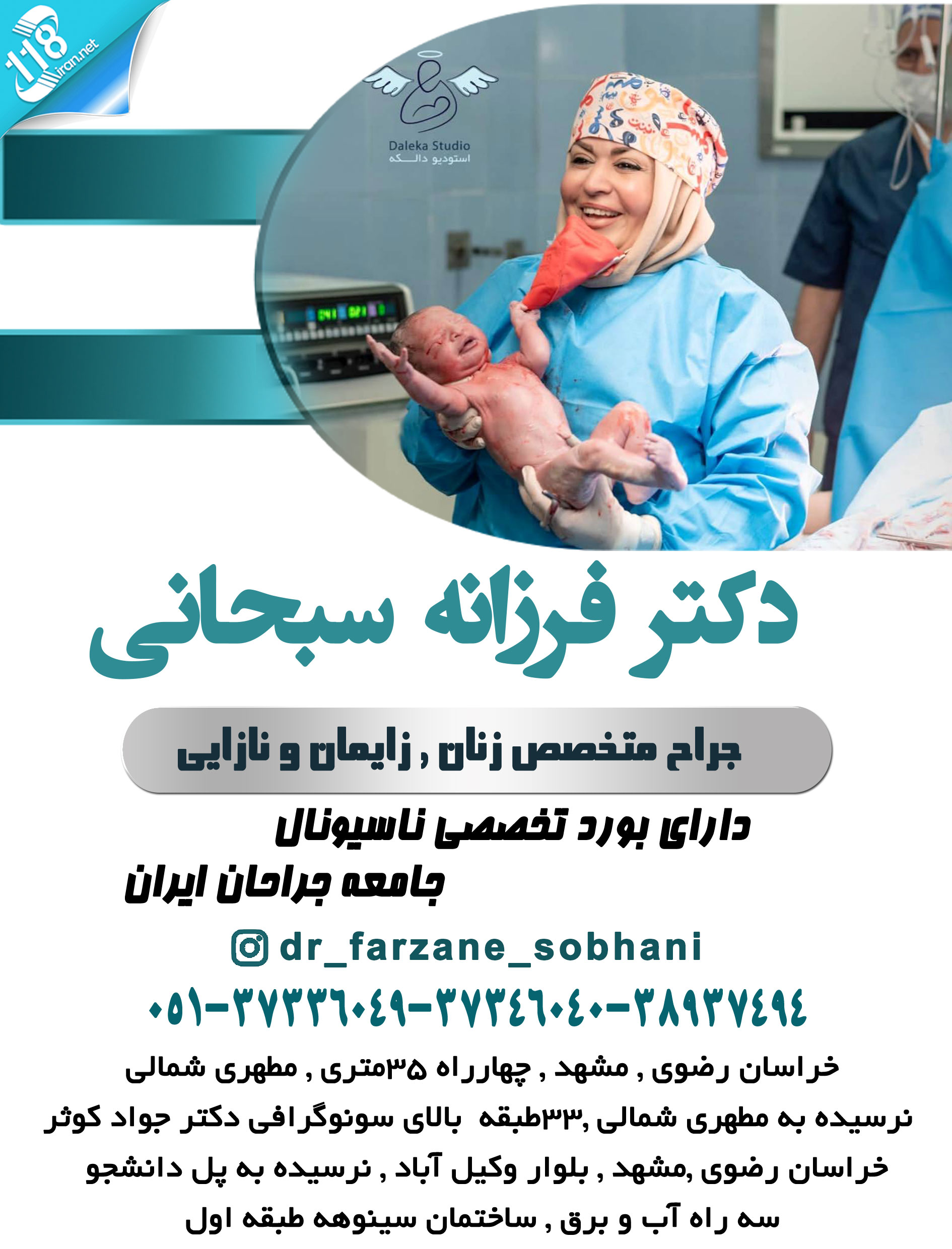 جراح متخصص زنان و زایمان و نازایی دکتر فرزانه سبحانی در مشهد