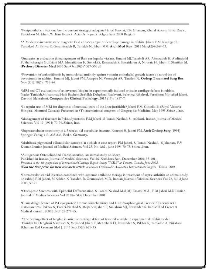 ٣- جايزه نفر دوم بهترين مقاله تحقيقي در كنگره جراحان ارتوپدي ايران ١٣٨٩