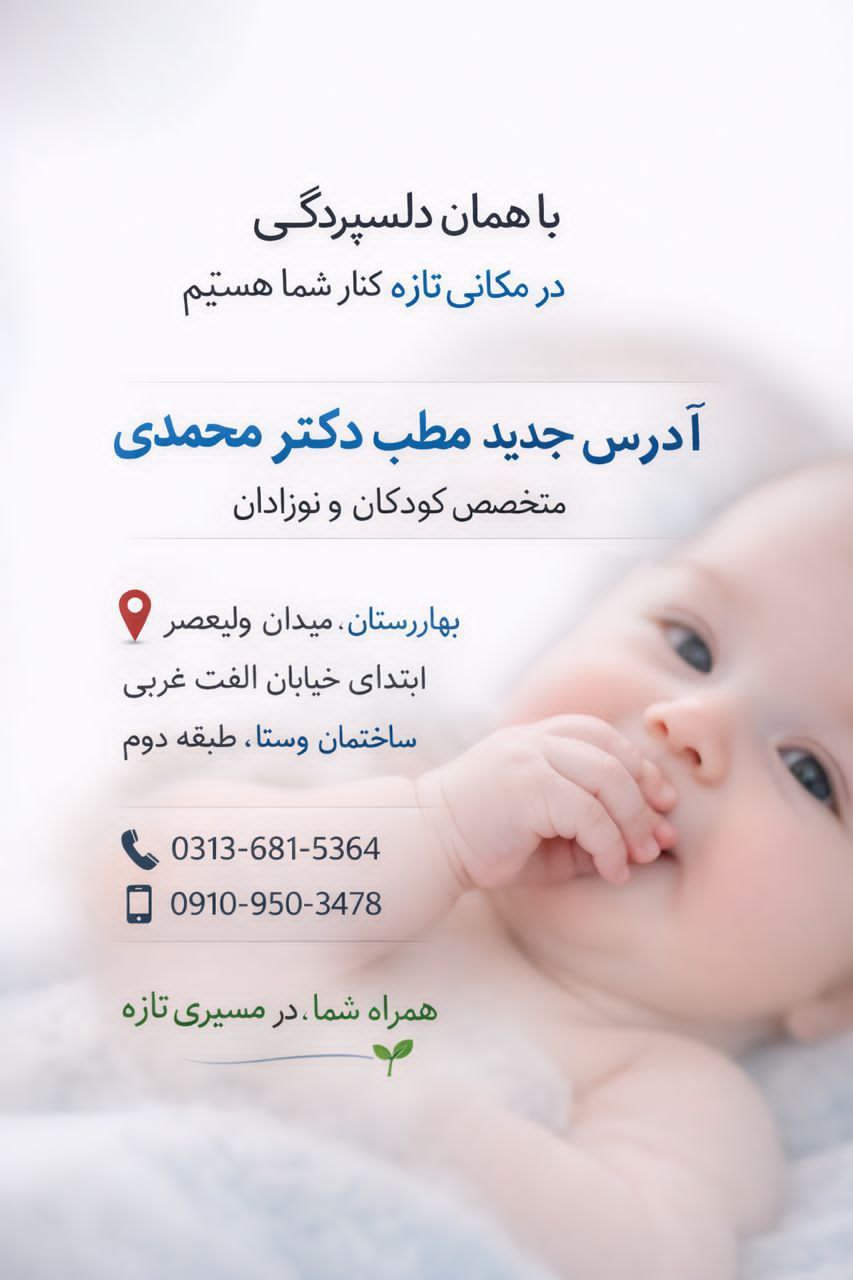 اصفهان , شهر بهارستان , میدان ولیعصر , ابتدای خیابان الفت غربی , ساختمان وستا , طبقه دوم , مطب دکتر غلامحسین محمدی