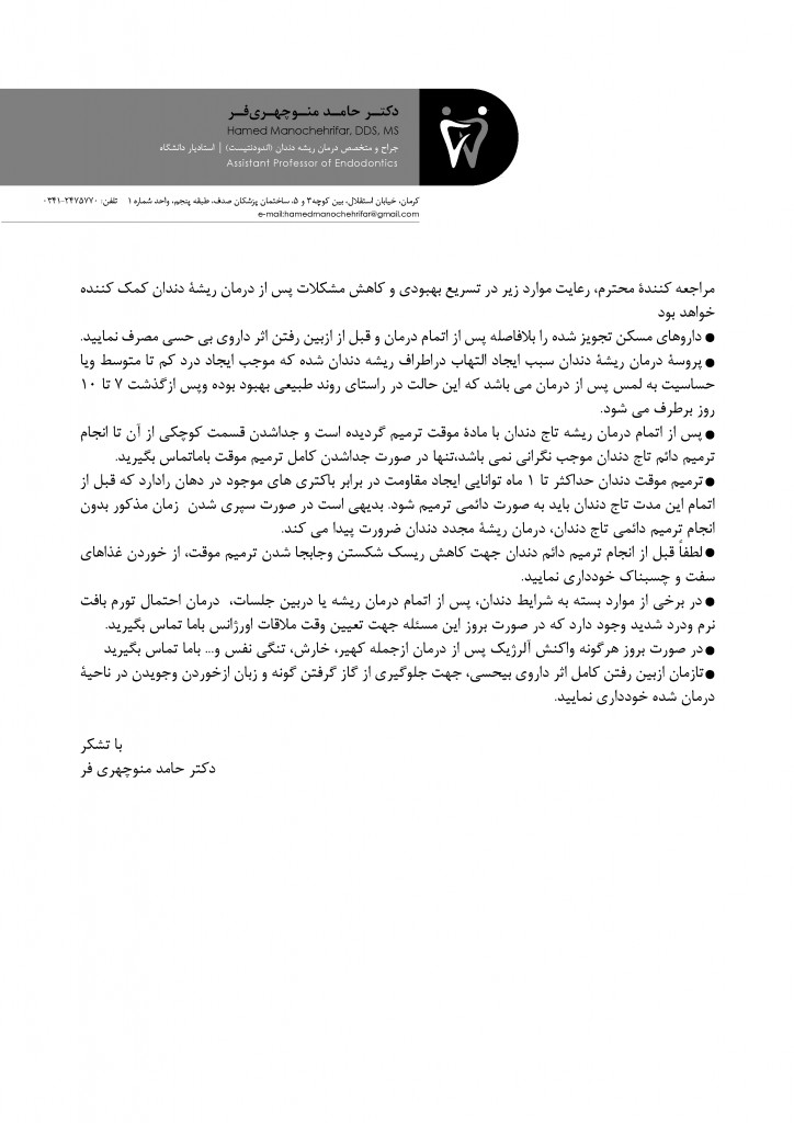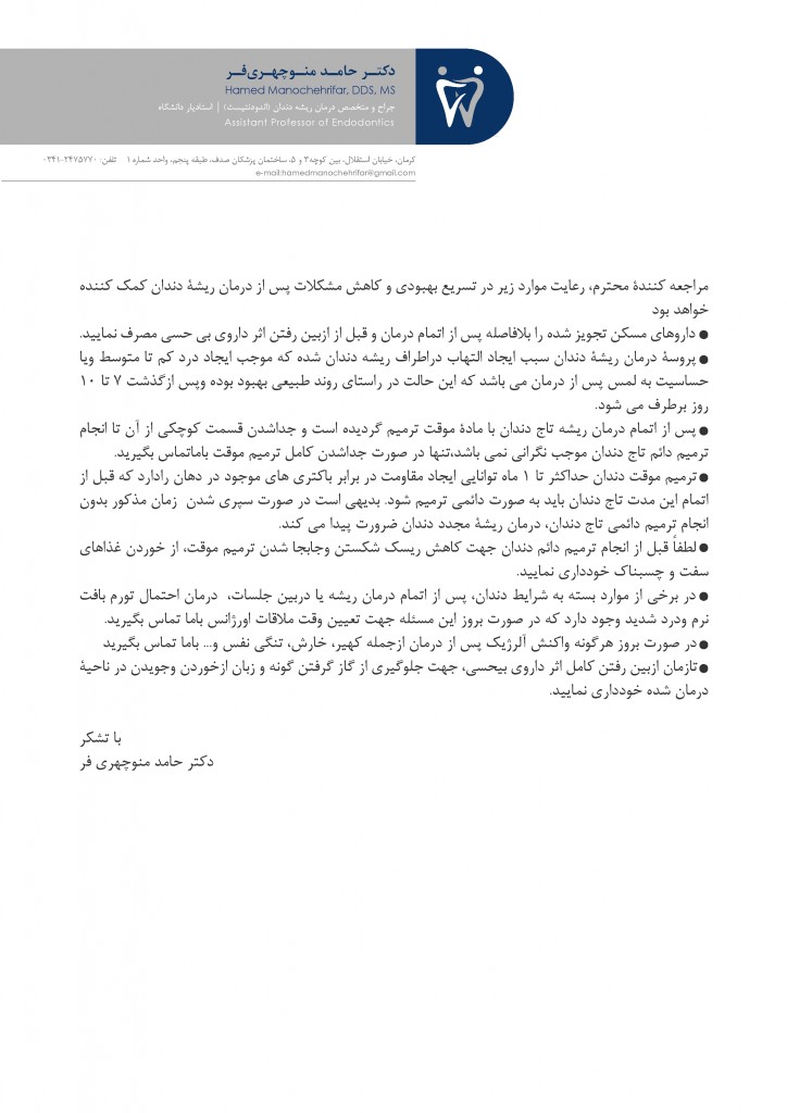 • جلوگیری از بیماری های لثه در نتیجه گسترش التهاب پالپ