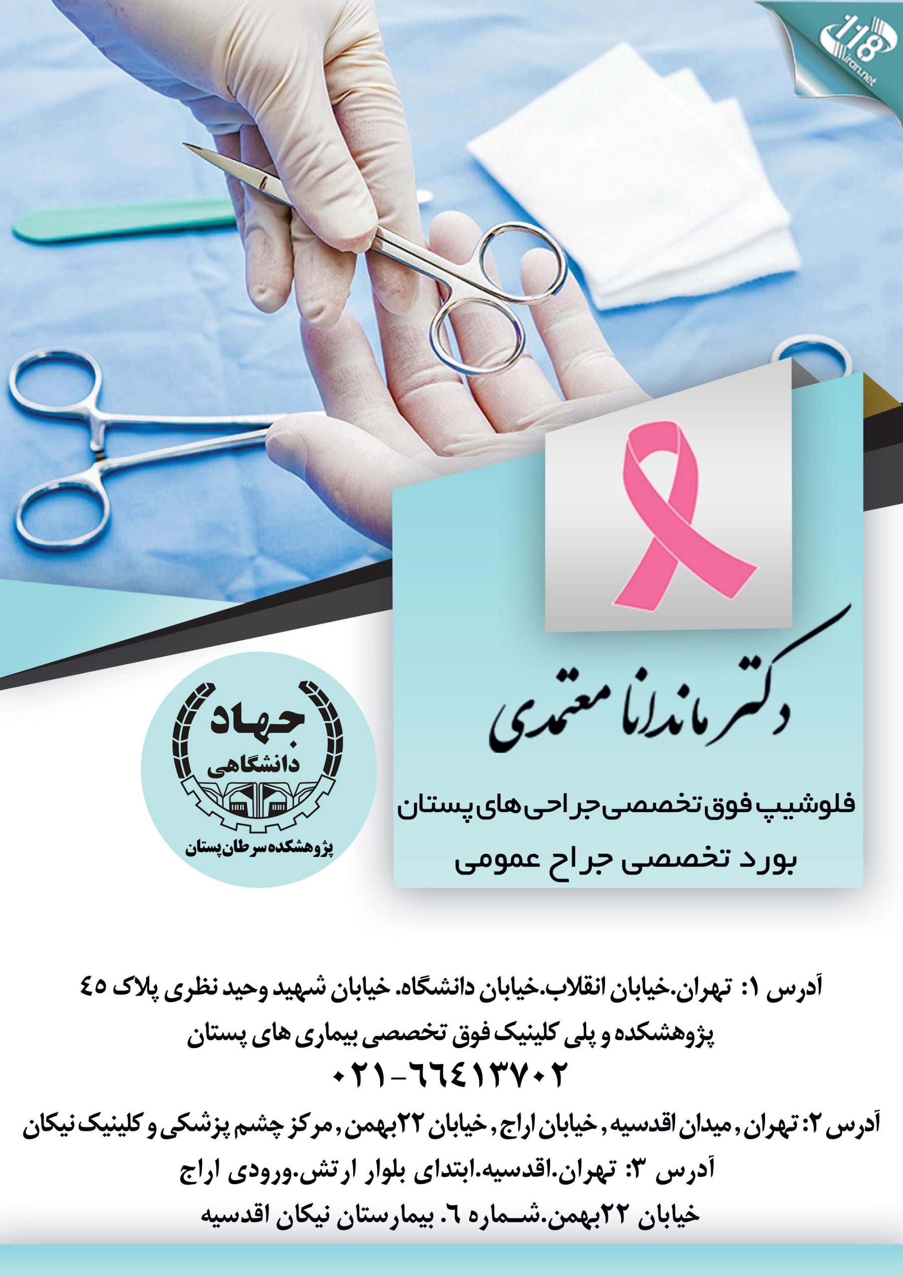 تهران.خیابان انقلاب.خیابان دانشگاه. خیابان شهید وحید نظری پلاک ۴۵. پژوهشکده و پلی کلینیک فوق تخصصی بیماری های پستان