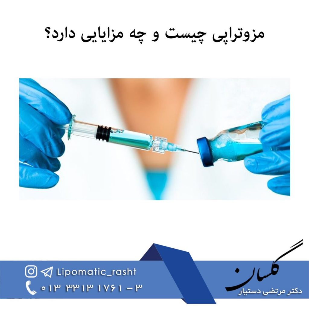 مزوتراپی یک درمان غیر جراحی امروزی است که با استفاده از مقدار کم دارو و تزریق های مکرر در ناحیه مورد نظر انجام میشود. داروهای مورد استفاده در مزوتراپی شامل داروهای جوانسازی، عصاره های گیاهی، ویتامین ها، مواد معدنی و آمینواسیدها می باشد. در این روش دارو به طور مستقیم به داخل مزودرم وارد میشود. این لایه از پوست دارای خواص بسیار ویژه درمانی می باشد. در مزوتراپی صورت با تزریق مواد تقویتی و ویتامین ها، لک و چین وچروک پوست از بین میرود. این روش درمانی نه تنها باعث جوانسازی پوست صورت میشود بلکه سبب استحکام، انعطاف پذیری و لطافت پوست می شود.