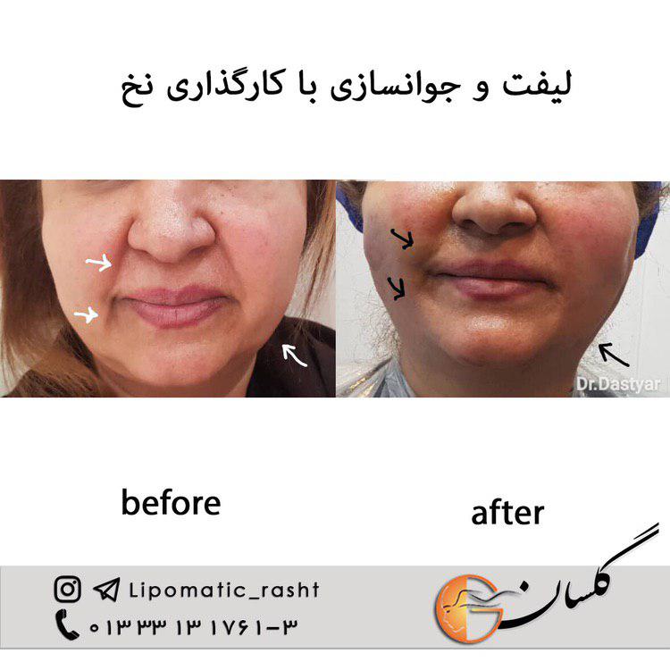 لیفت پیشرفته با نخ (طلایی , سینی لویت , مستر) ,جوانسازی پیشرفته تضمینی با نخ , بینی , گردن , ابرو و جوانسازی و کلاژن سازی صورت با نخ های خاردار