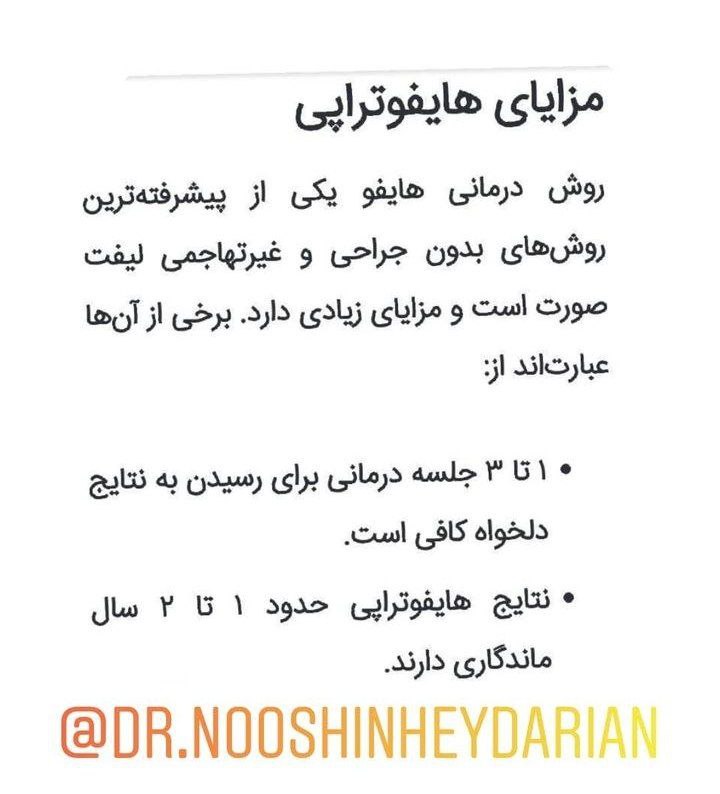 در این روش از امواج فراصوت استفاده میشود و هیچ نیازی به ایجاد برش، زخم، بخیه و مواردی از این دست وجود ندارد. دستگاه هایفوتراپی مستقیماً بر سطح پوست قرار میگیرد و امواج فراصوت منتشر شده از آن، بر لایههای زیرین پوست اثر میگذارد. این امواج باعث تحریک کلاژن سازی پوست میشوند که از اجزای ساختاری مهم پوست هستند. با افزایش کلاژن سازی، پوست لیفت شده، سفت میشود و چین و چروکهای آن از بین میرود.