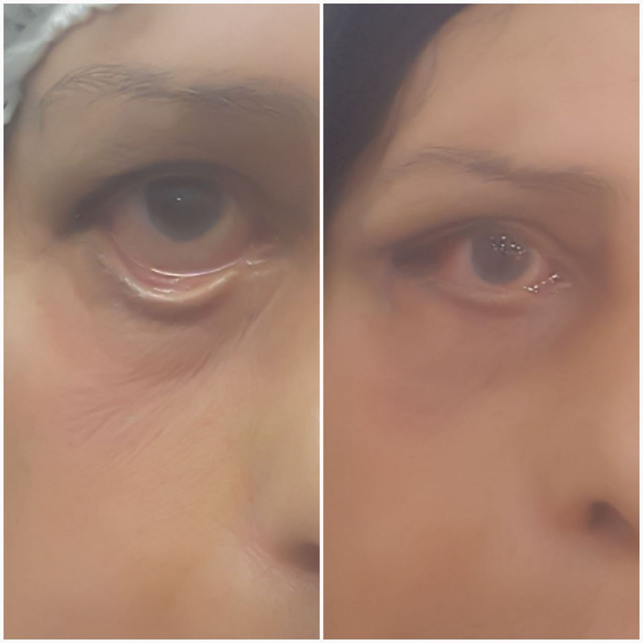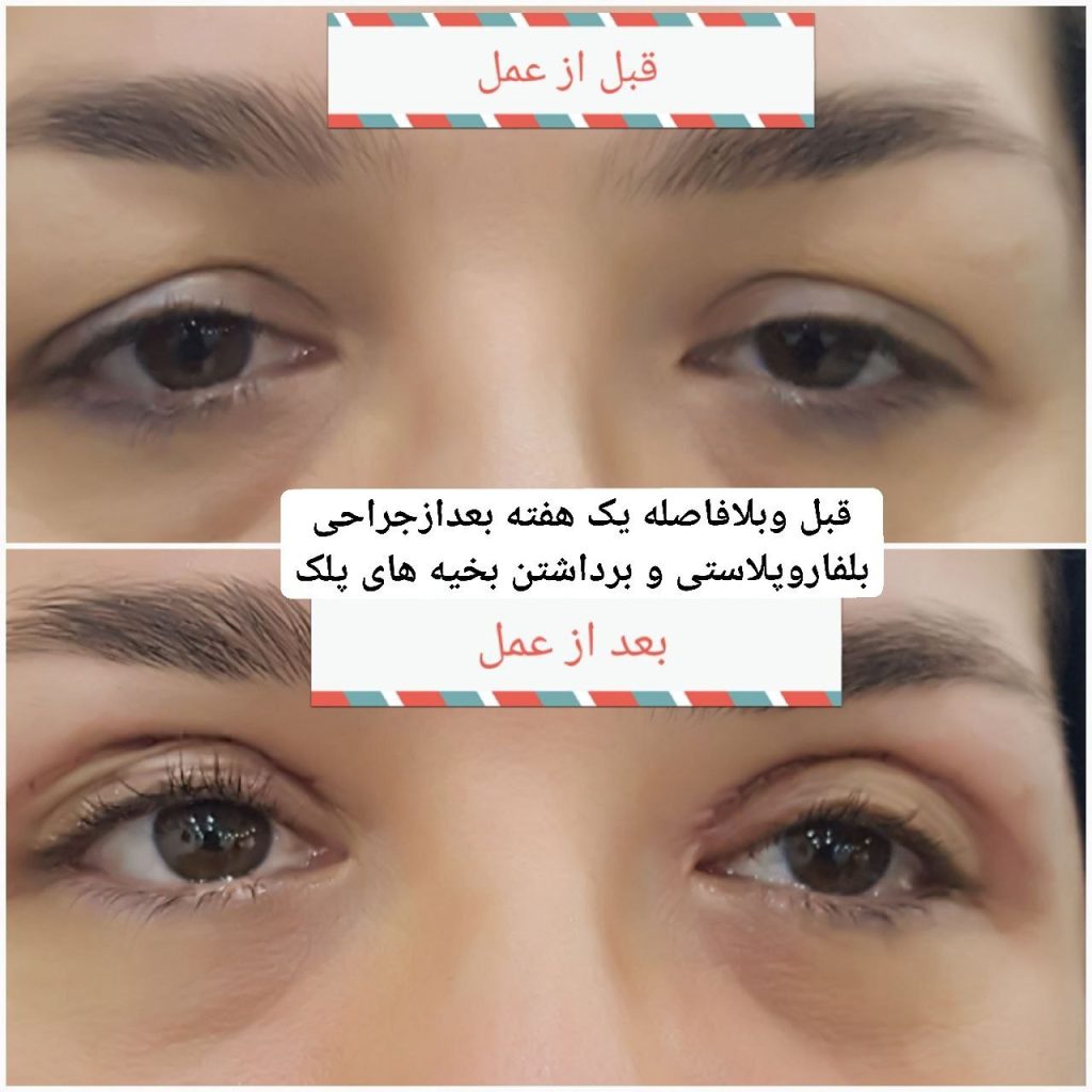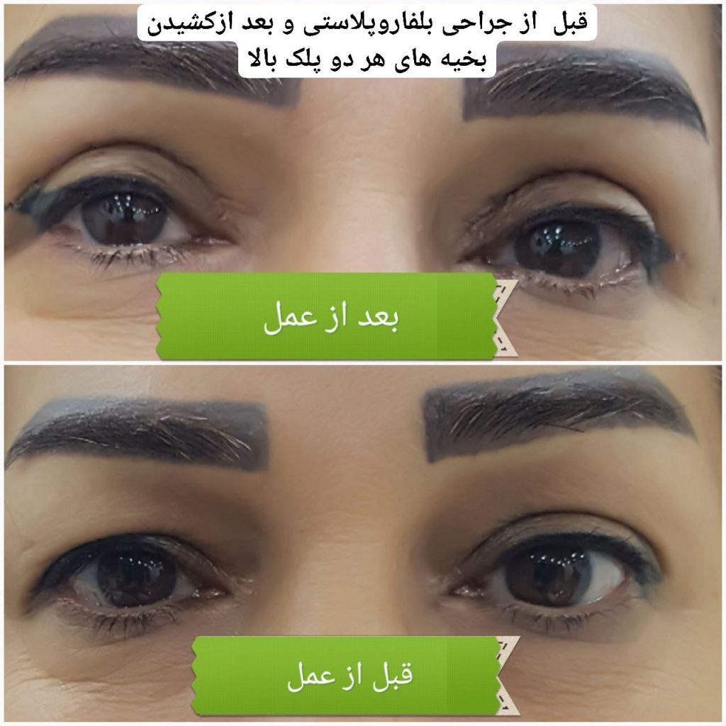 قبل و بعد از اصلاح افتادگی پلک پایین .