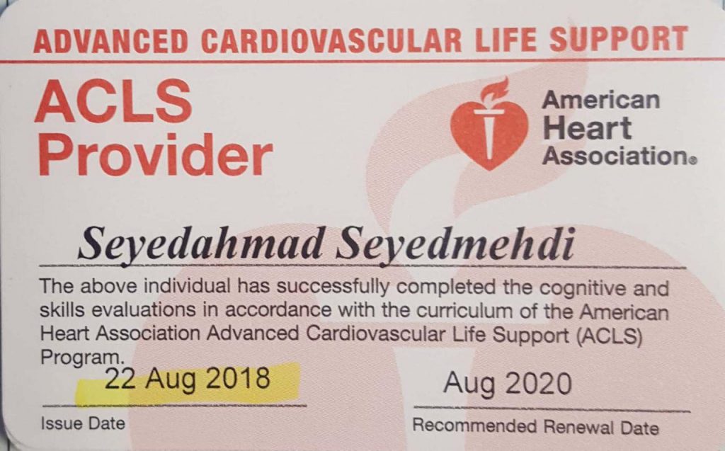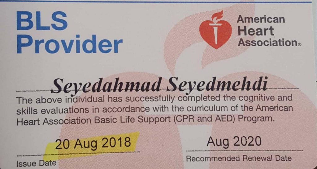 مدرس احیای قلبی ریویCPR پایه و پیشرفته BLS &ACLS با گواهی AHAانجمن قلب امریکا