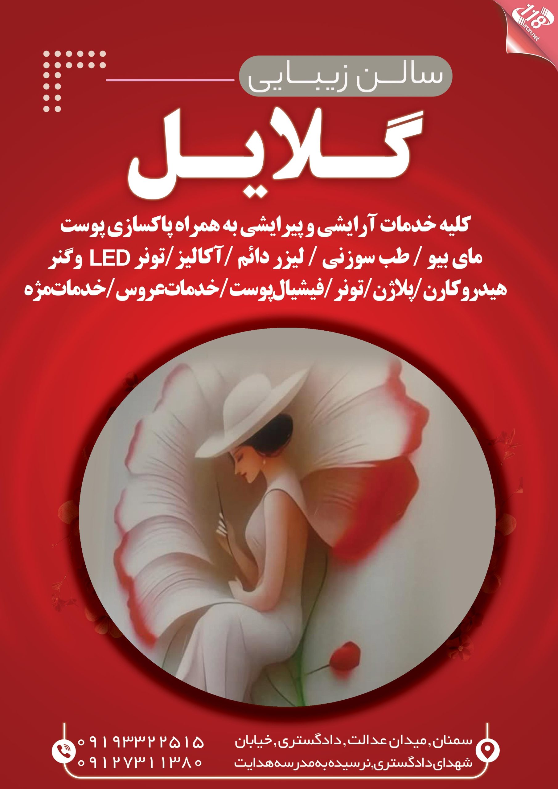 سمنان , میدان عدالت , دادگستری , خیابان شهدای دادگستری , نرسیده به مدرسه هدایت , سالن زیبایی گلایل