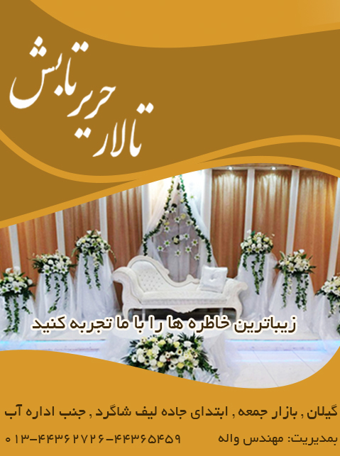 زیباترین خاطره ها را با تالار حریر تابش تجربه کنید