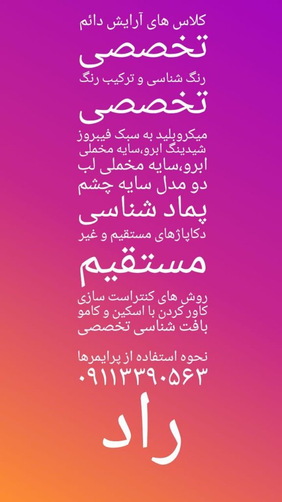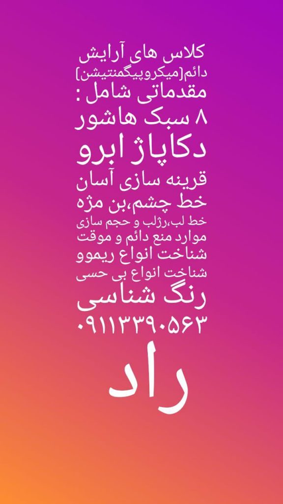 آیتم‌های کلاس‌های کامل آرایش دایم از مبتدی تا حرفه‌ای آموزشگاه و سالن زیبایی مه سیما: