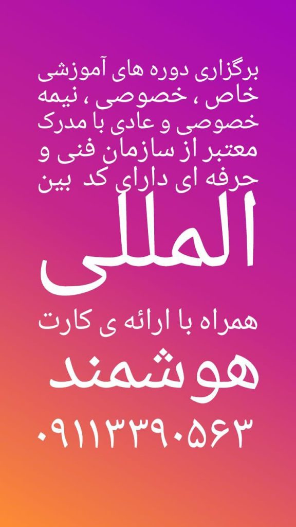 ✅کلیه موارد آموزشی که شامل ۳۰ استاندارد آموزشی سازمان فنی و حرفه ای کشور است با ارایه مدرک از سازمان فنی و حرفه ای و کارت هوشمند توسط آموزشگاه مه سیماارایه میشود.