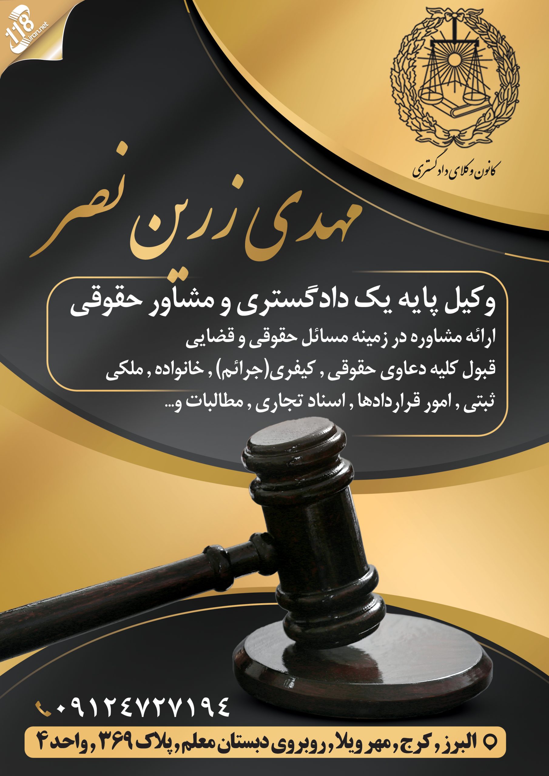 مهدی زرین نصر وکیل پایه یک دادگستری در کرج