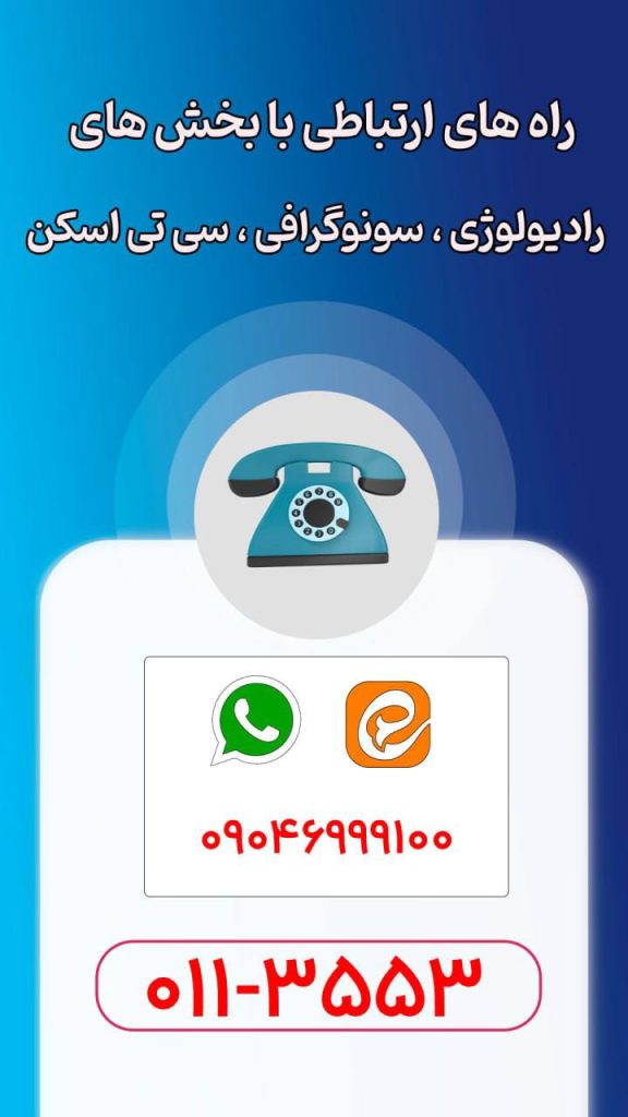 راه های ارتباطی با بخش های رادیولوژی , سونو گرافی , سی تی اسکن در واتساپ و ایتا: