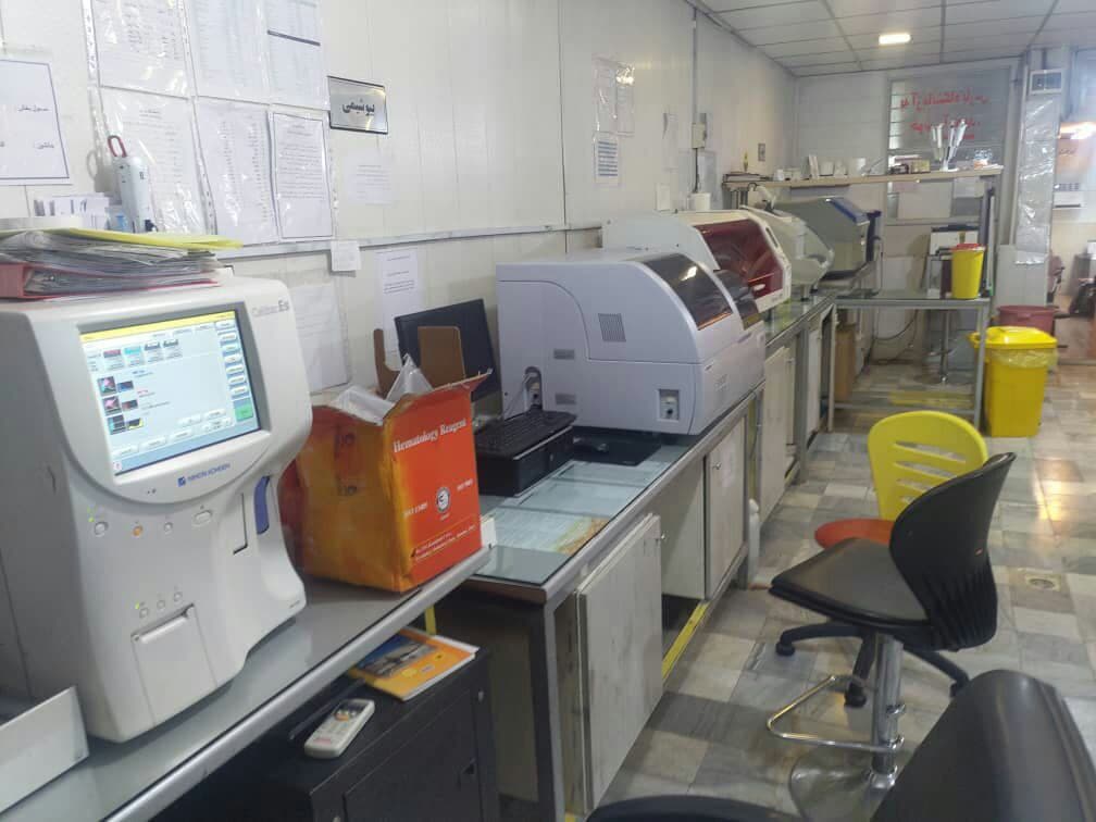 بخش هماتولوژی: در این بخش آزمایش‌های CBC، ESR، گروه خون وRH، PT، PTT، شمارش پلاکت ، شمارش رتیکولوسیت ، HT و HB، سیلان ، انعقاد انجام می‌شود.