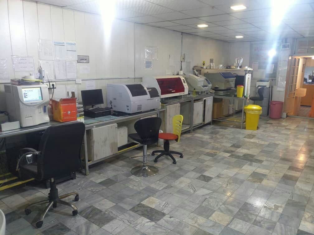 بخش بیوشیمی: در این بخش آزمایش‌های قند ، اوره ، کراتینین ، کلسترول ، تری گلیسیرید ، اسید اوریک ، بیلی روبین DوT ،کلسیم ، فسفر، پروتئین ، آلبومین ، یونوگرام ،SGOT، SGPT، AIP، LDH و گازومتری انجام می‌شود.