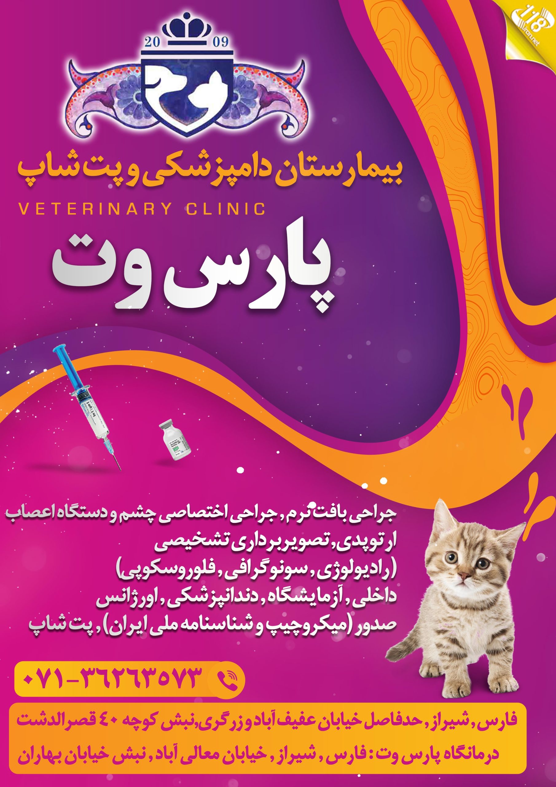 بیمارستان دامپزشکی و پت شاپ پارس وت شیراز