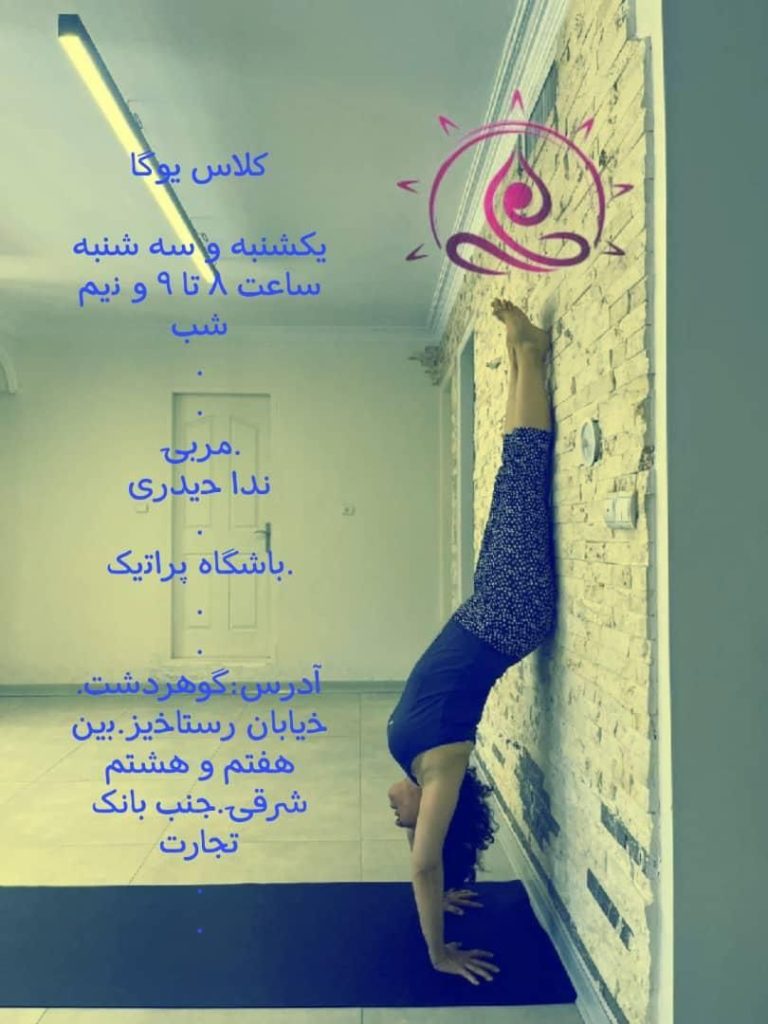 کلاس های یوگا روزهای یکشنبه و سه شنبه ساعت 8 الی 9:30 شب برگزار میشود.