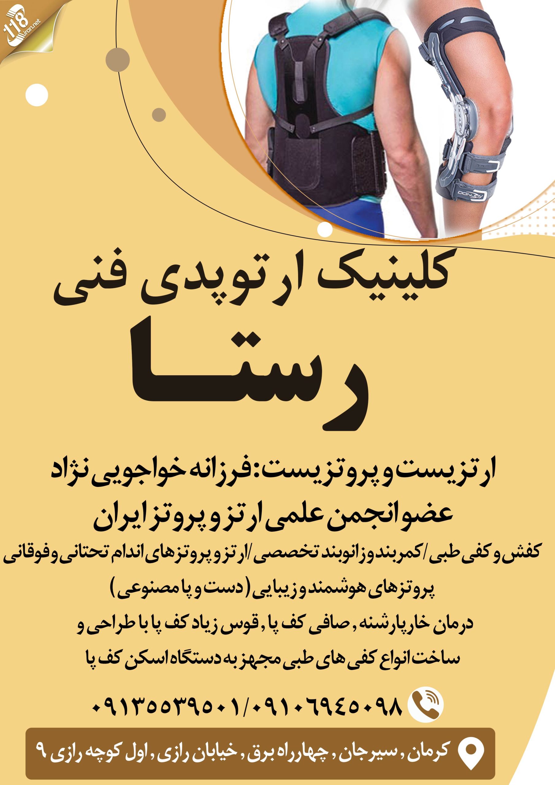 کلینیک ارتوپدی فنی رستا در سیرجان