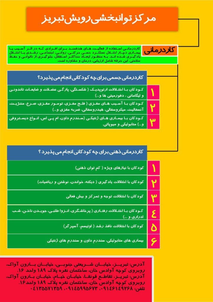 تخصصی ترین مرکز توانبخشی در تبریز ( ارائه خدمات کاردرمانی , گفتاردرمانی , نورورتراپی , بازی درمانی و … )