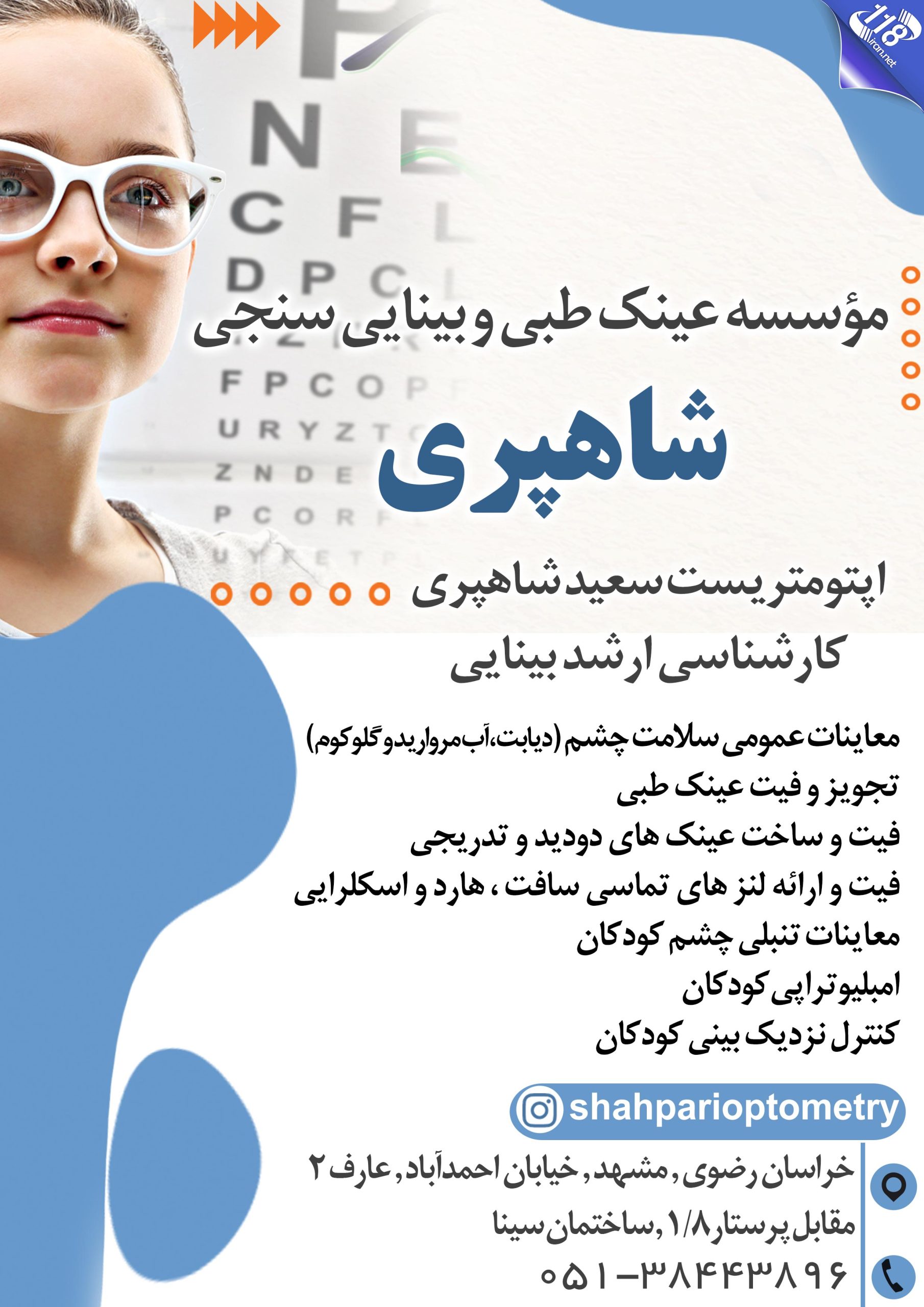 مؤسسه عینک طبی و بینایی سنجی شاهپری در مشهد