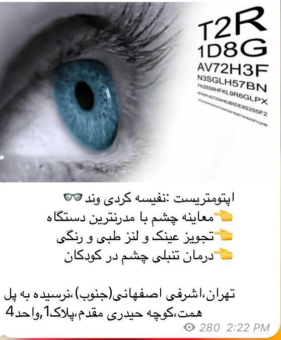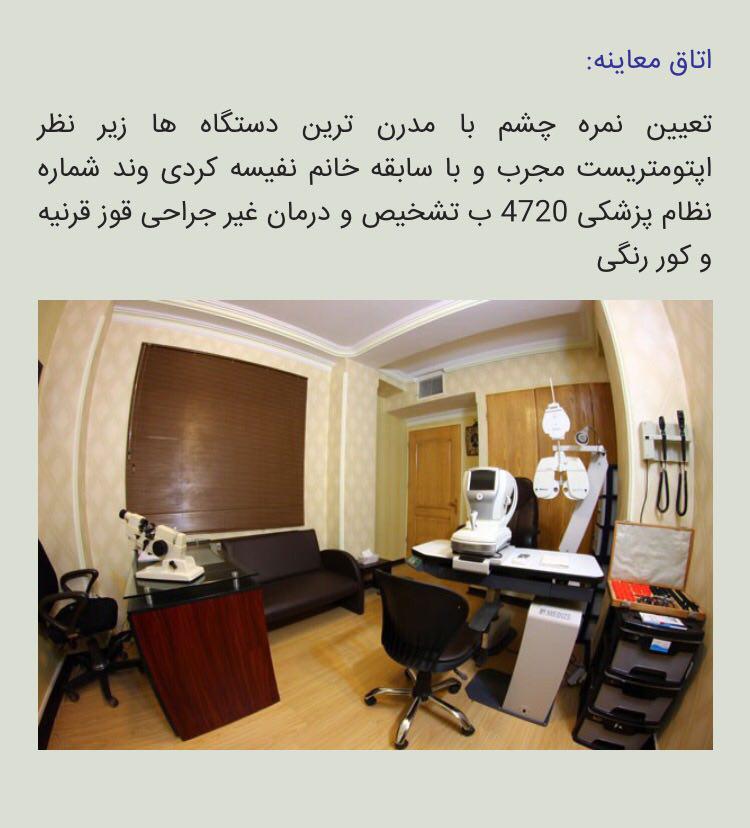 تعیین نمره چشم با مدرن ترین دستگاه ها زیر نظر اپتومتریست مجرب و با سابقه خانم نفیسه کردی وند ،شماره نظام پزشکی ۴۷۲۰ب،تشخیص و درمان غیر جراحی قوز قرنیه و کوررنگی