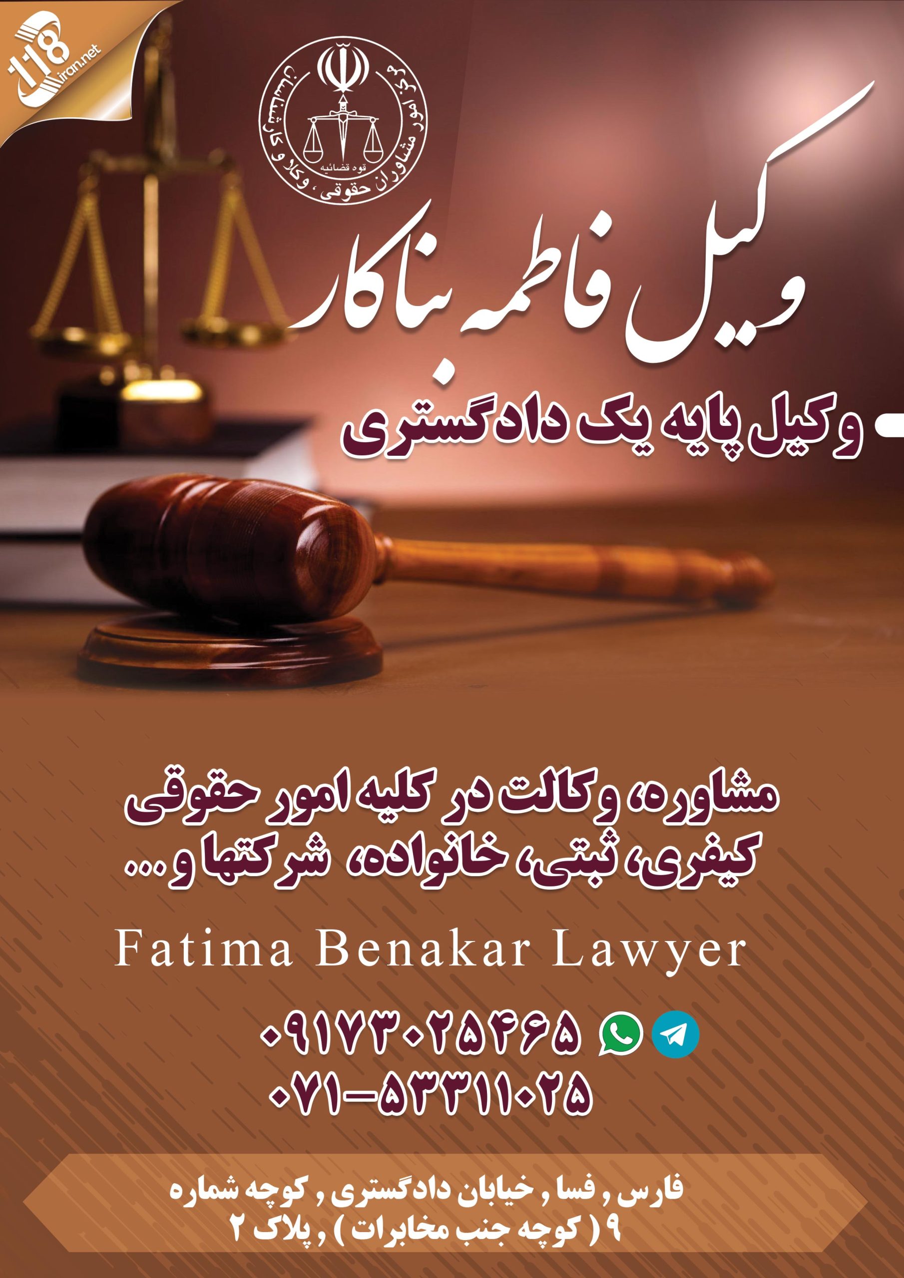 وکیل فاطمه بناکار در فسا